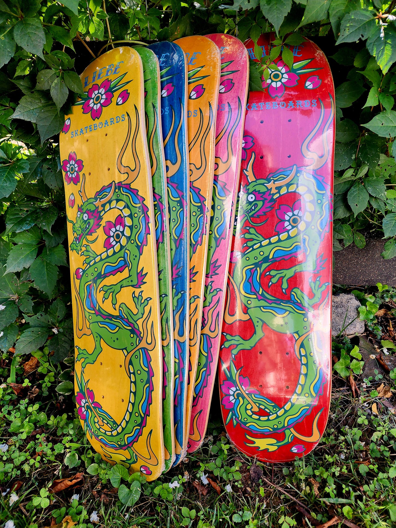 Welcome to the Liebe Grom Squad — where young skaters learn to ride with fire! The Neon Dragon is the first official deck in our Grom Squad series, built for the next generation of shredders who are ready to fly.