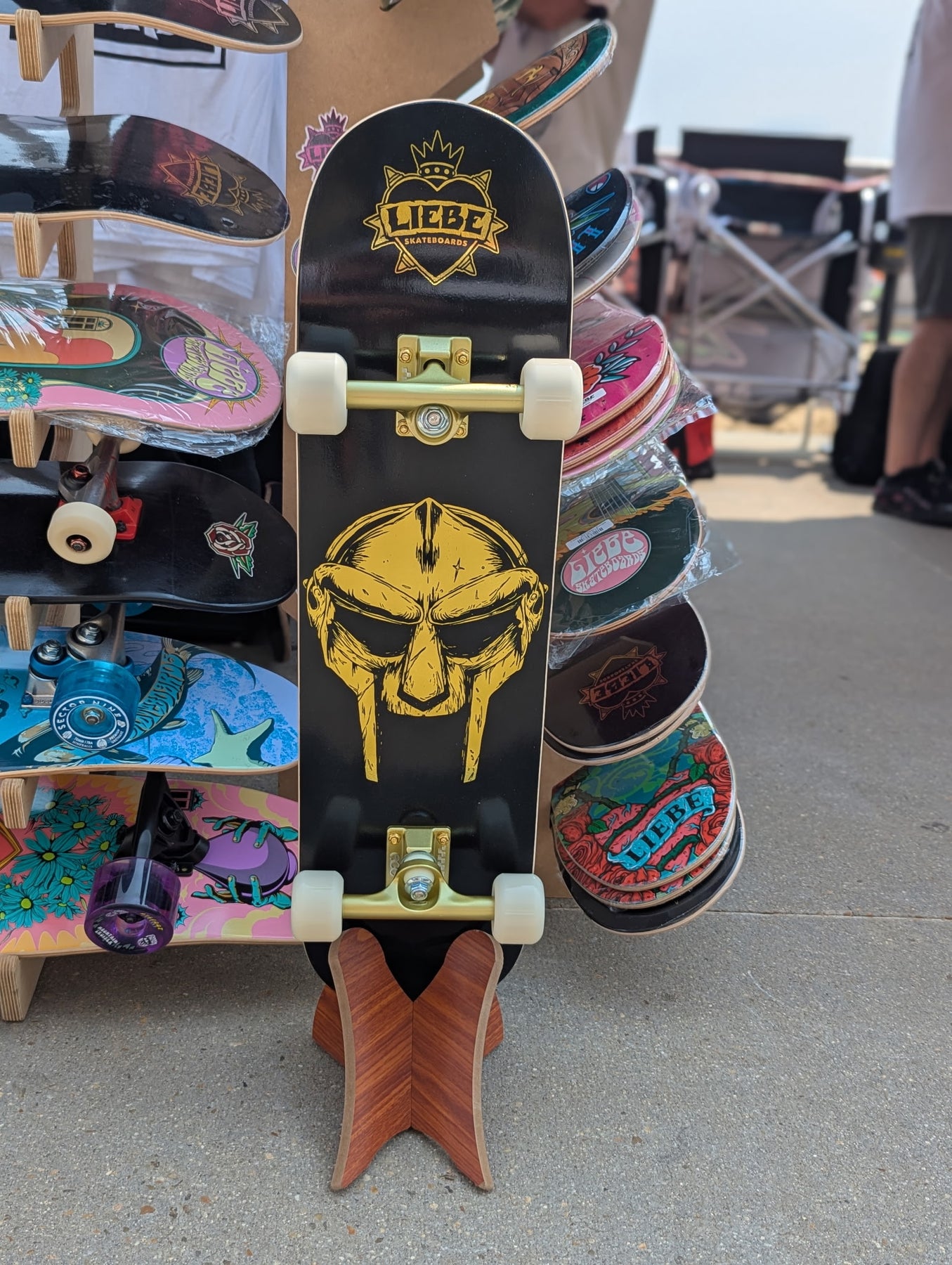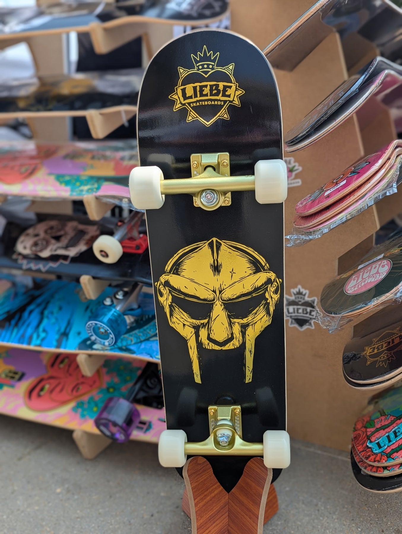 Completes include Liebe grip tape, silver trucks, white Liebe Heartburns wheels, Liebe Roll-Aids bearings and Liebe Stints hardware.