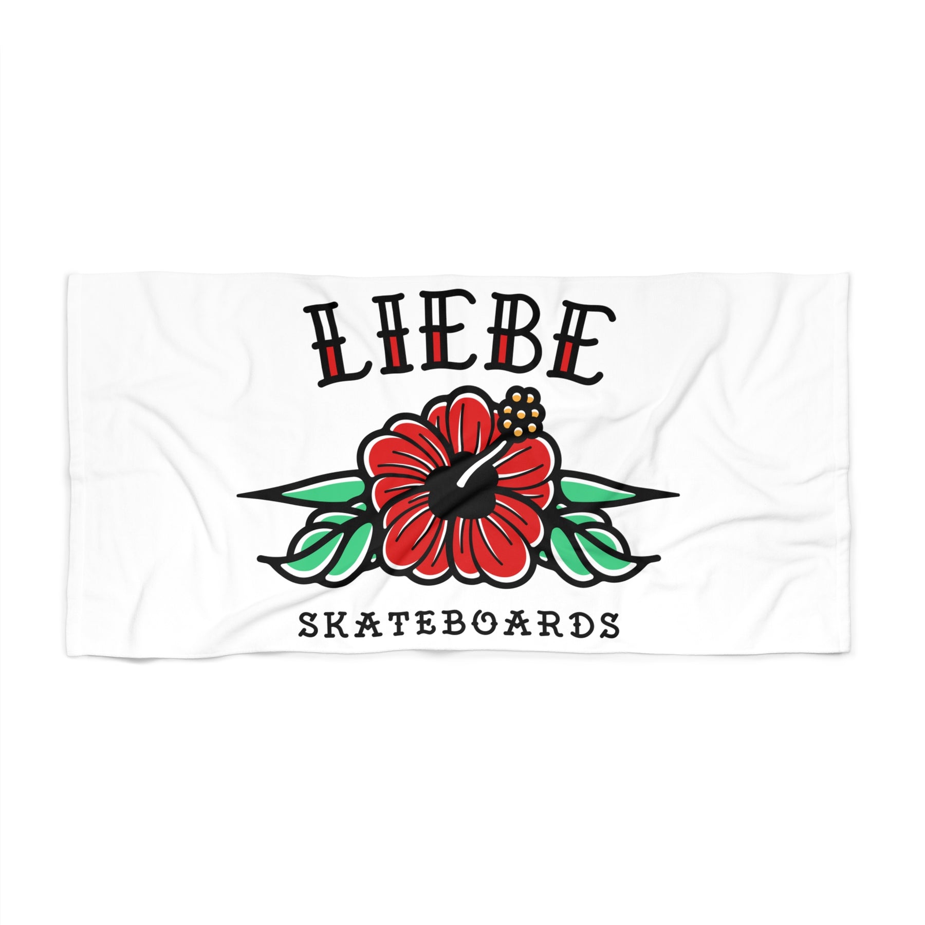 Add some island energy to your summer with the Liebe Hibiscus Beach Towel. Featuring the bold Liebe Skateboards logo and a vibrant red hibiscus flower, this towel is made for beach days, poolside lounging, and sunny adventures. It’s soft, absorbent, and eye-catching—perfect for relaxing in style.