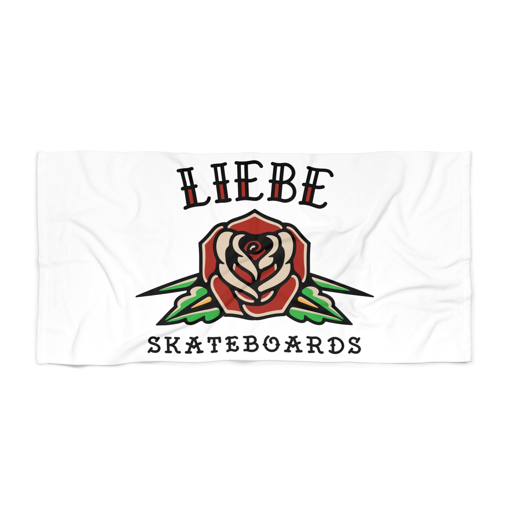 Bring bold style to your beach days with the Liebe Rose Beach Towel. Featuring the Liebe Skateboards logo surrounded by a vivid rose design, this towel is soft, absorbent, and made for sunny adventures. Whether you’re lounging by the water or drying off after a swim, it’s the perfect mix of comfort and attitude.