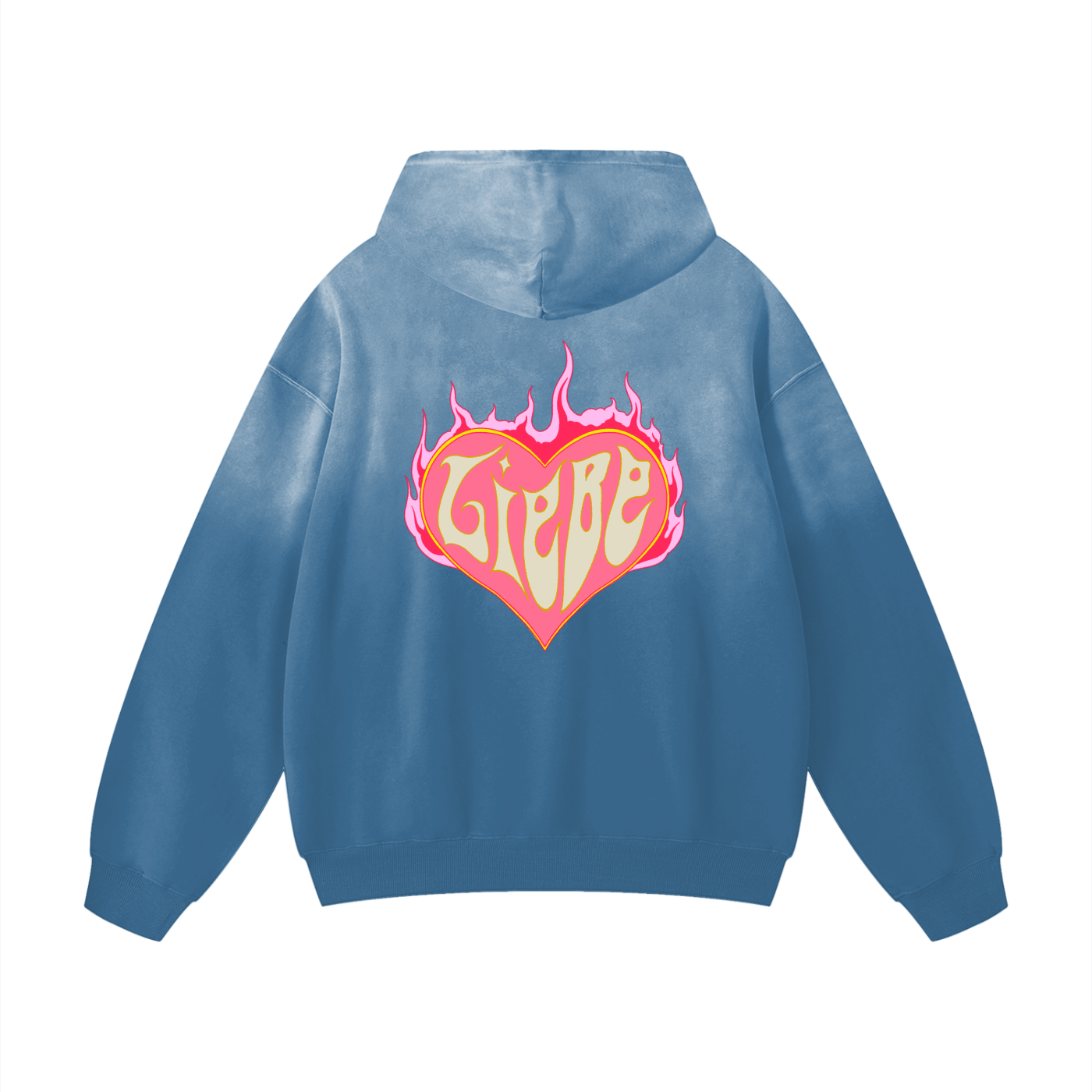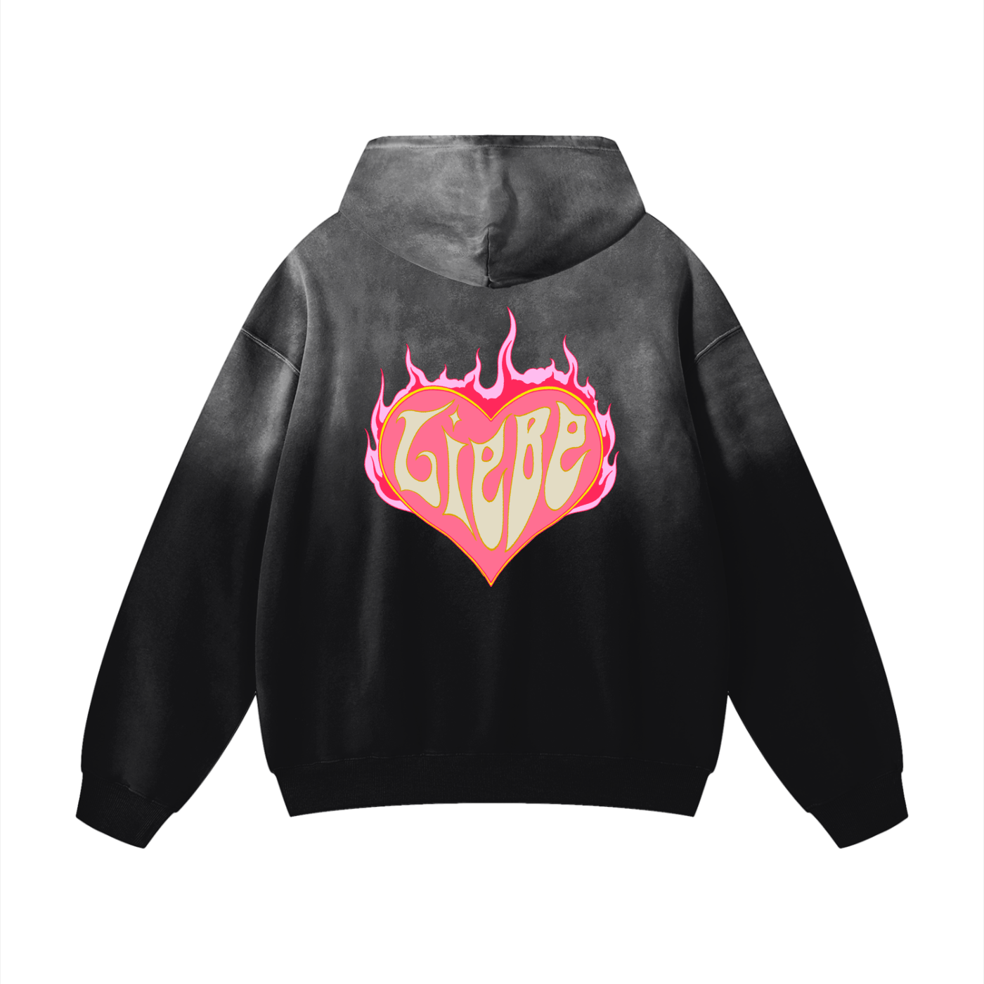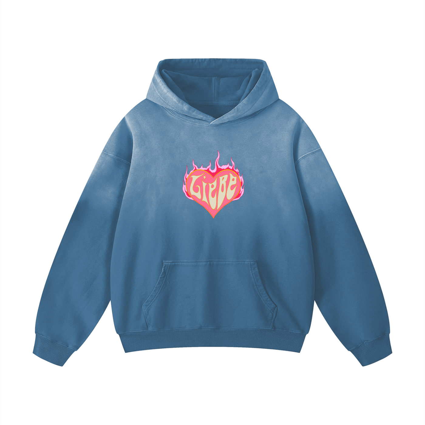 Ignite your style with the Liebe Flaming Heart Heavyweight Sunfade Oversized Hoodie — a bold statement of love, passion, and individuality. Featuring the new Liebe Flaming Heart logo from the Firefly design, this piece blends classic skate attitude with a vintage sun-faded wash that feels broken-in from the first wear.
