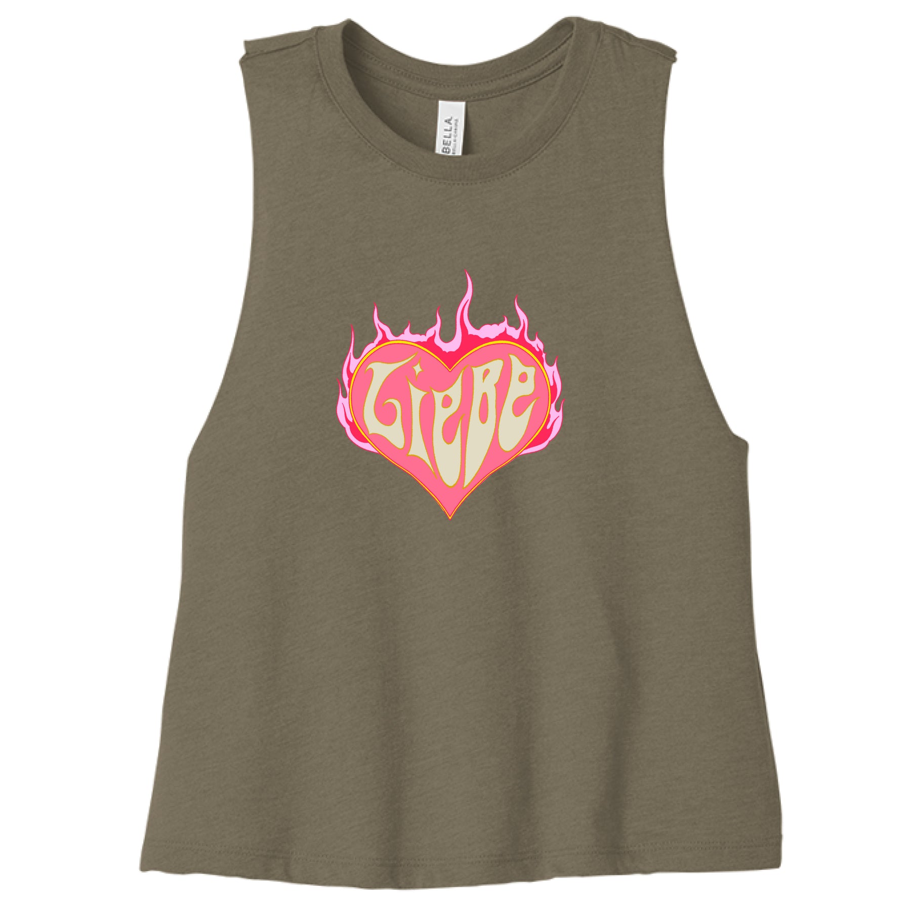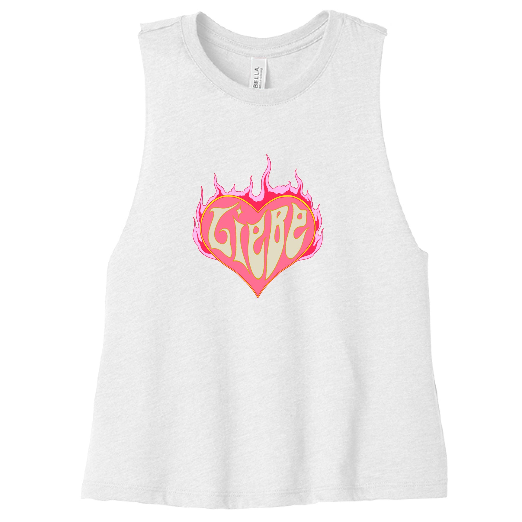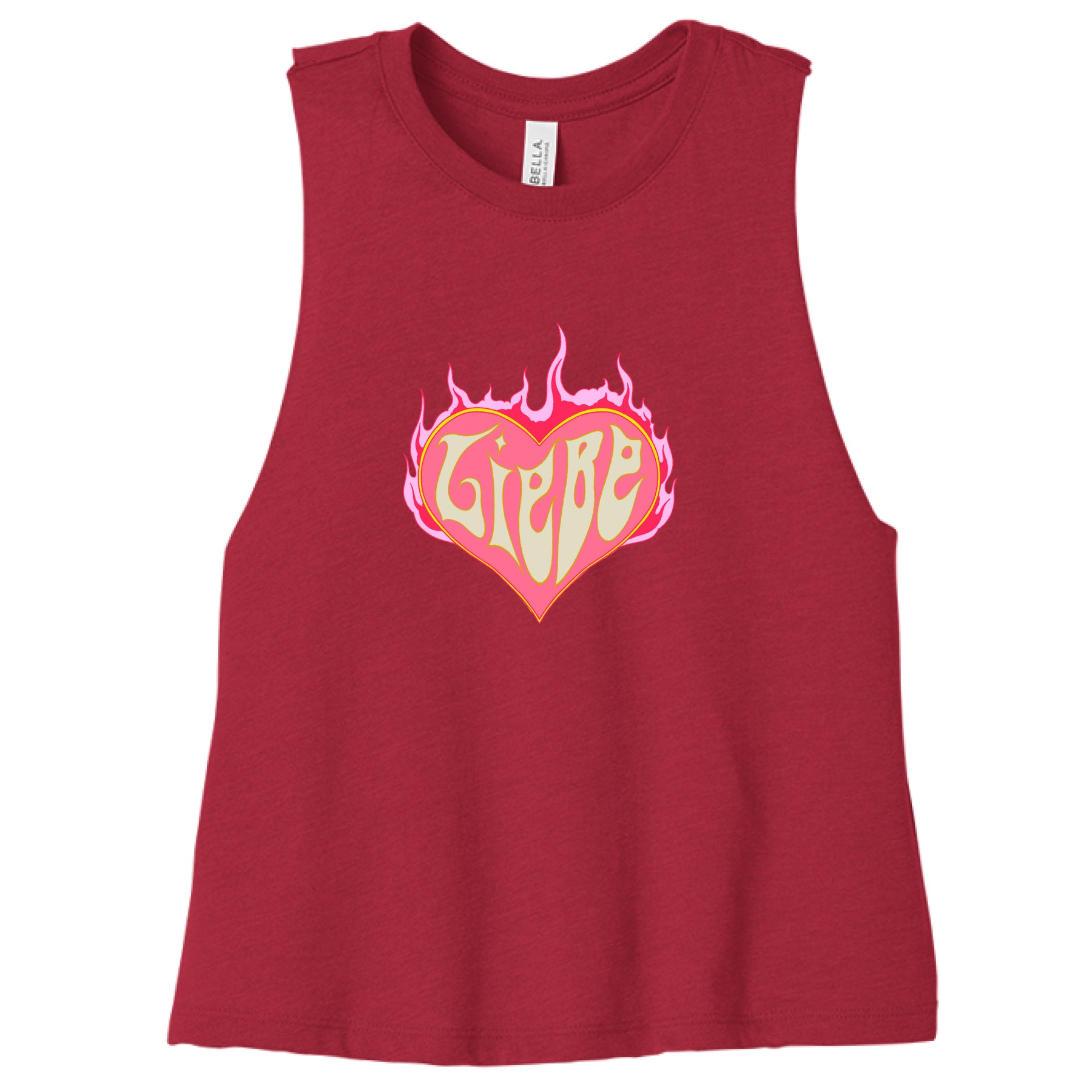 Liebe Flaming Heart Logo Women’s Cropped Racerback Tank