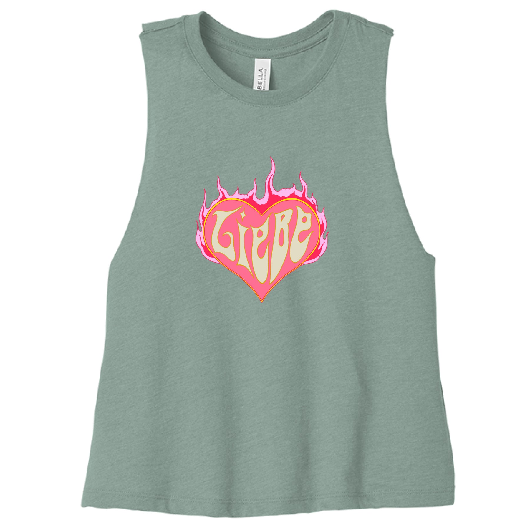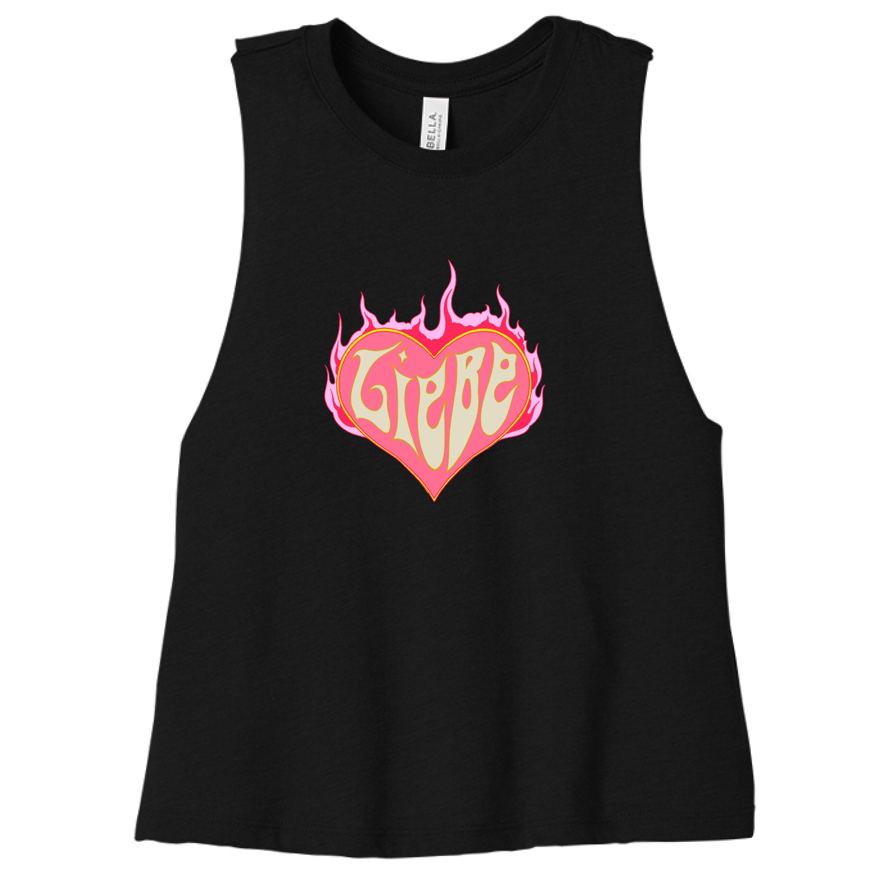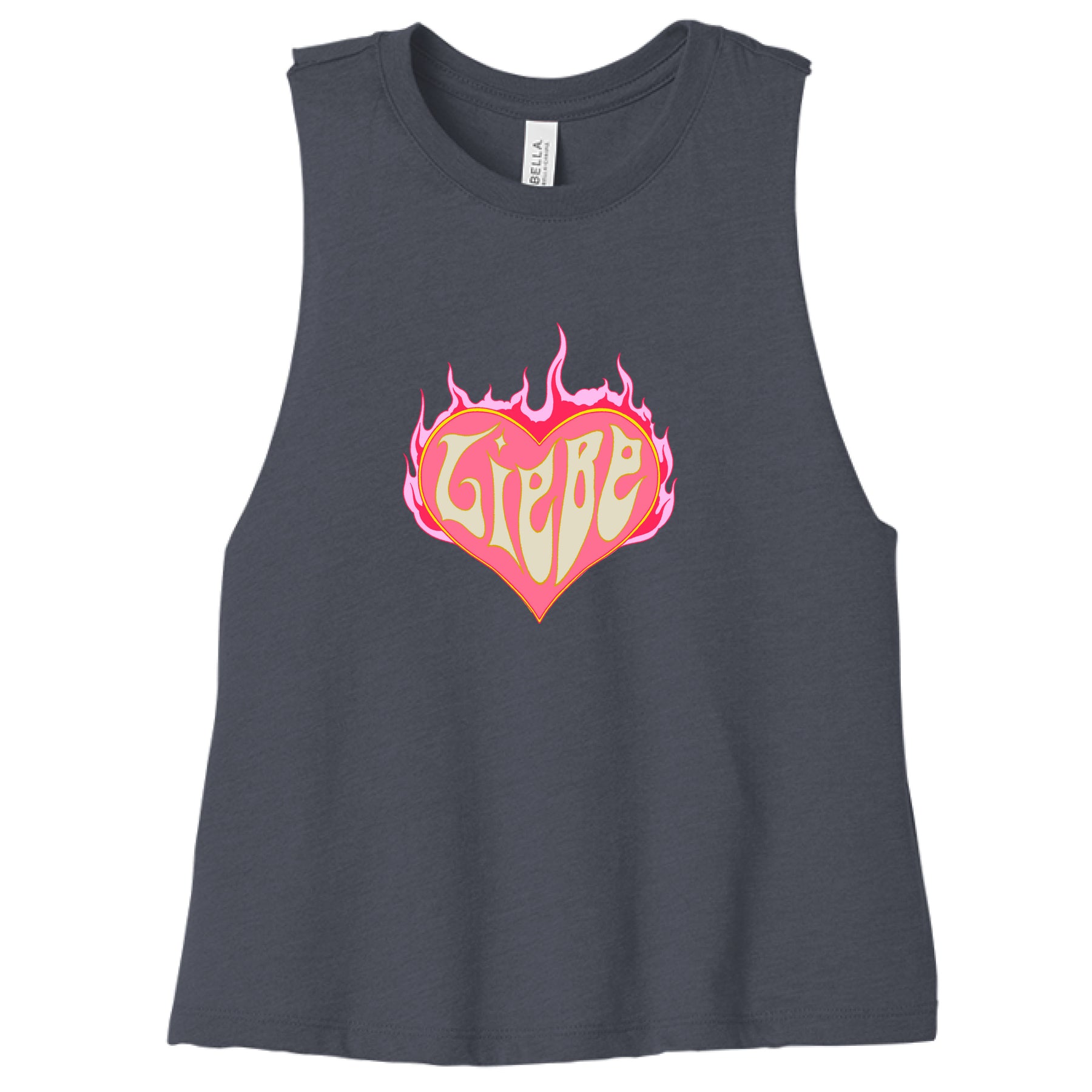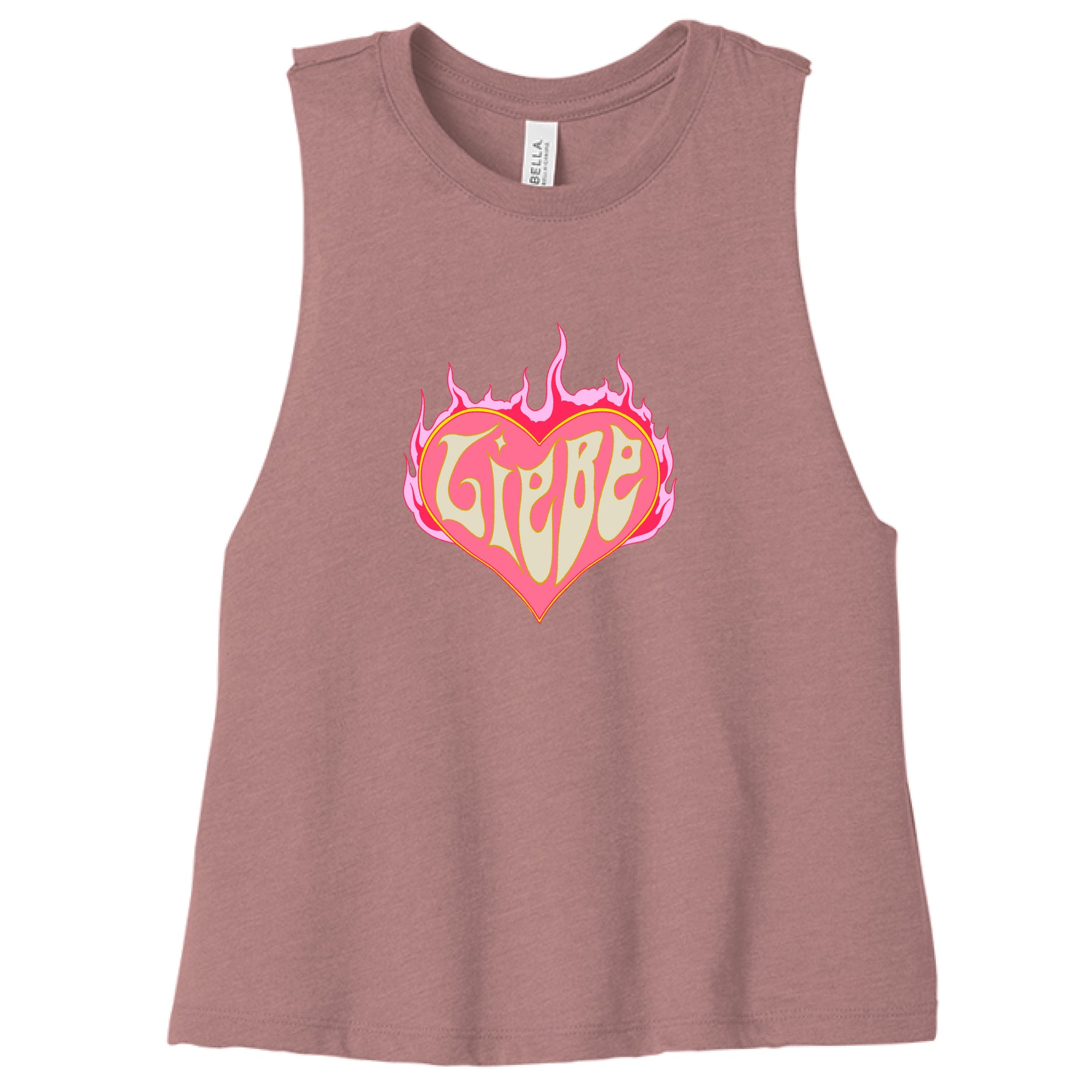 Liebe Flaming Heart Logo Women’s Cropped Racerback Tank