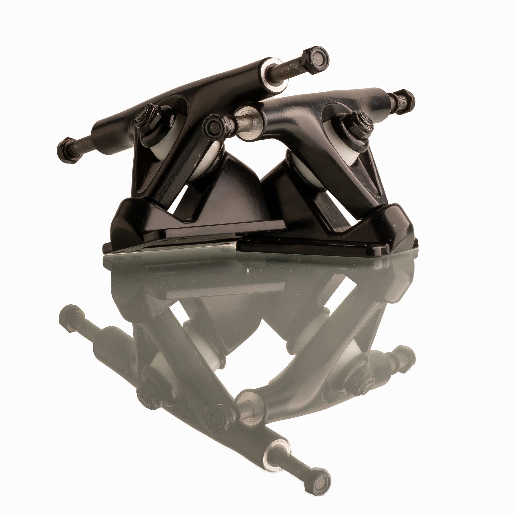 Waterborne RKP trucks are a premium cruiser or longboard truck ideal for adding to our Surf Adapters or standing alone on a conventional setup. The Aluminum alloy has been formulated for lightness and spring, while the bushing formula has been borrowed from the Rail Adapter to offer the same rail to rail flow from these trucks.