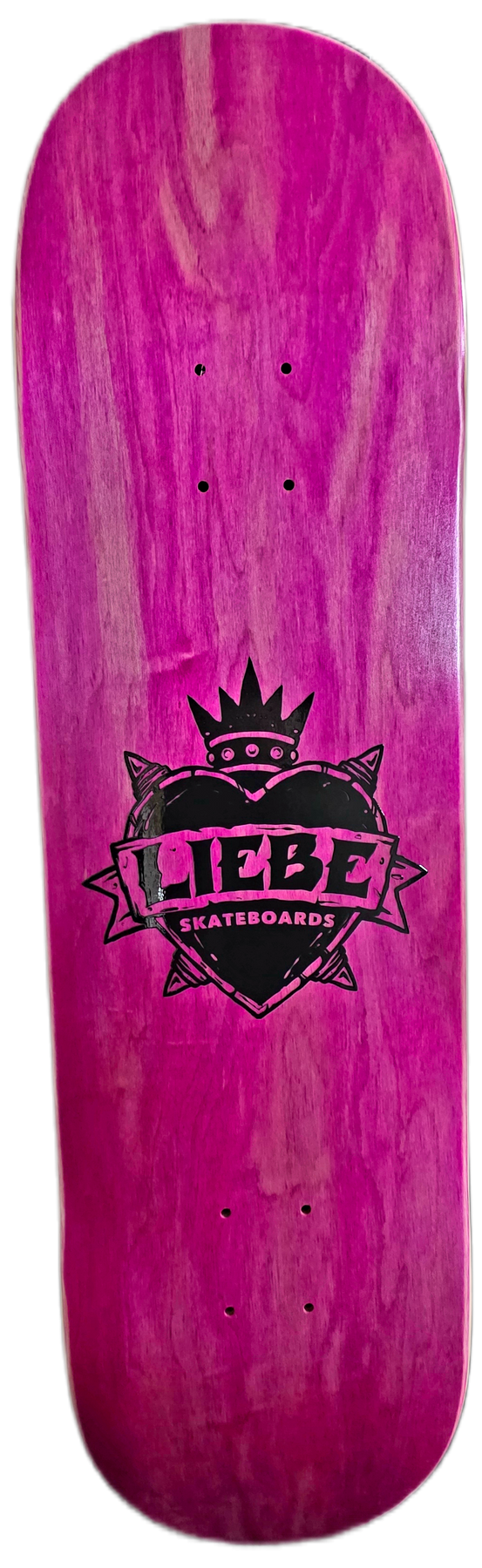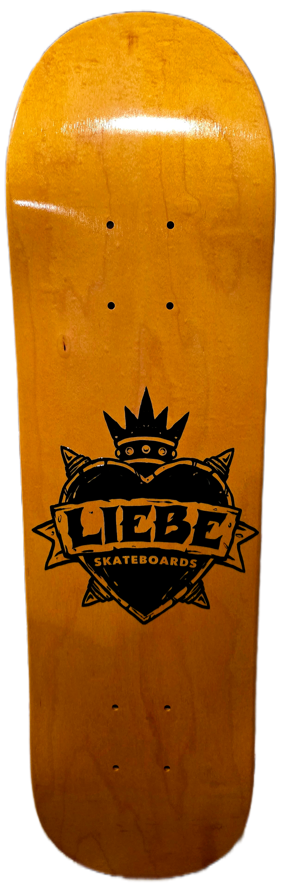The Liebe Logo Deck keeps it simple and loud. Assorted stained wood veneers topped with the black punk heart logo. No distractions. No fluff. Just pure skateboarding.